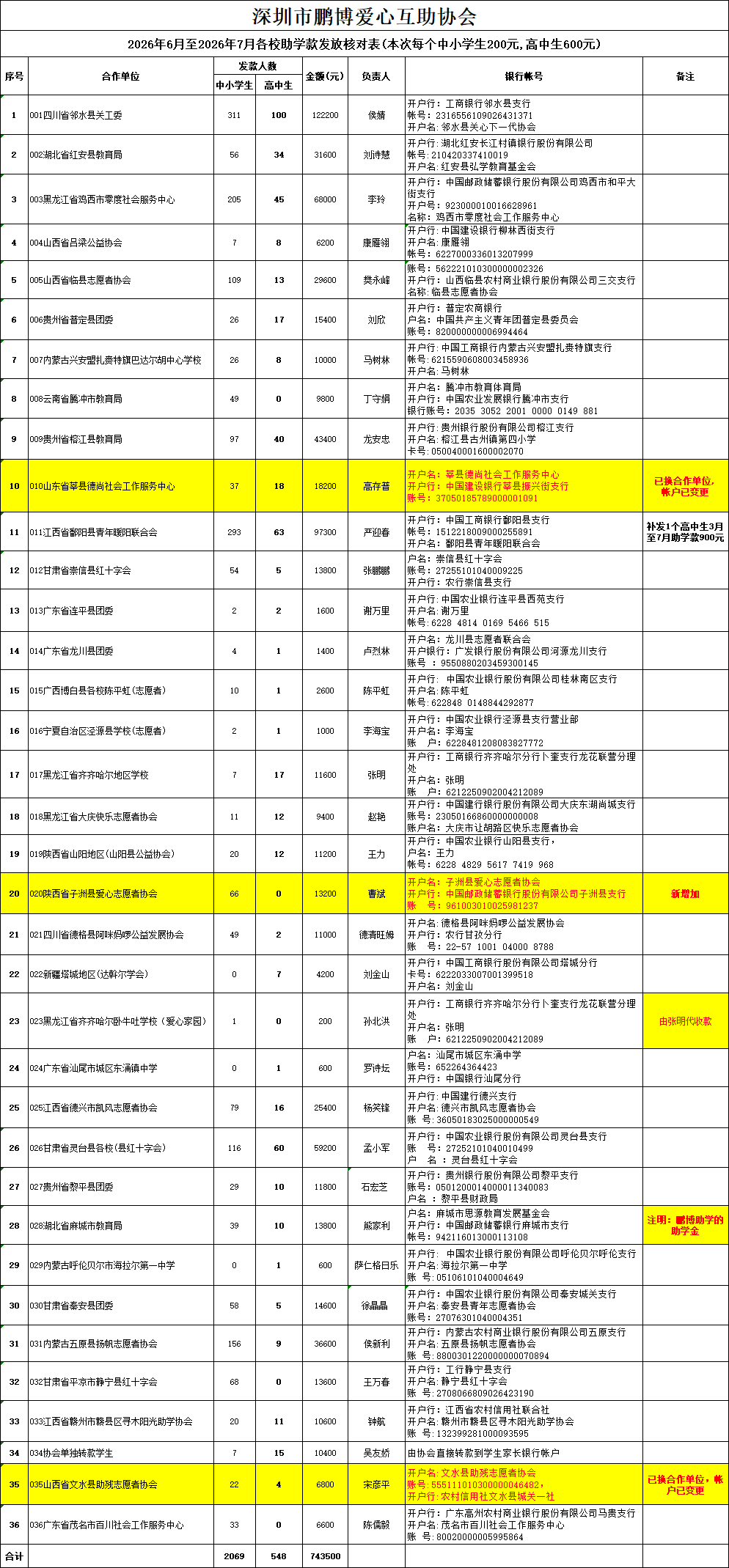 助学款统计 (1)历年助学款转款统计及发放确认! |