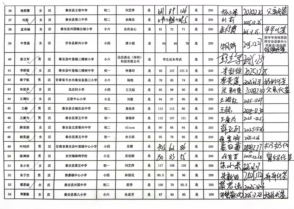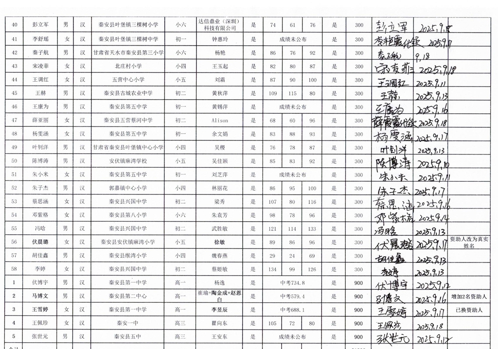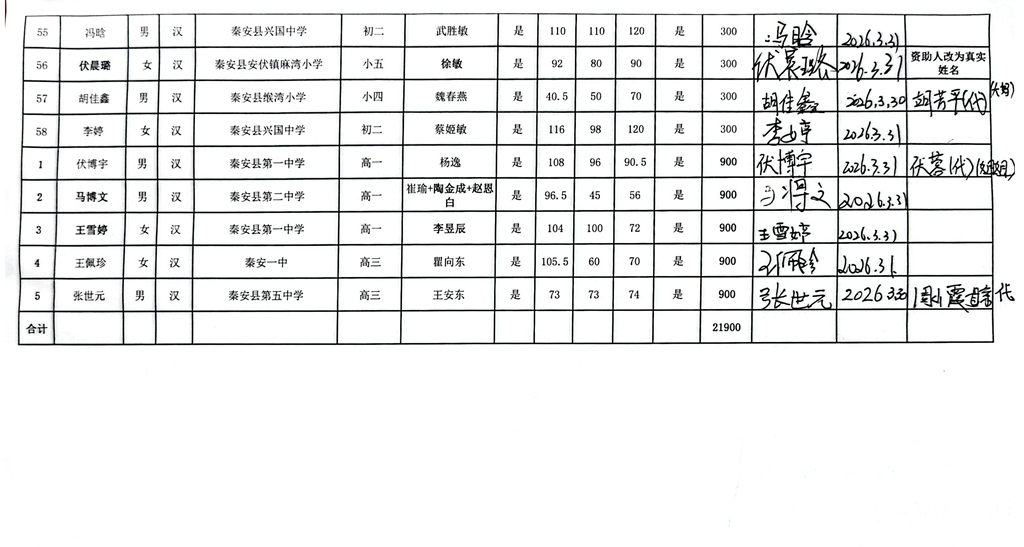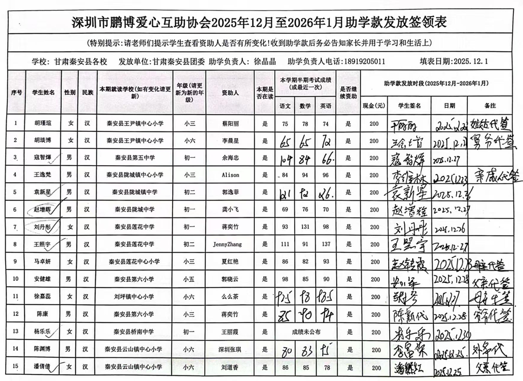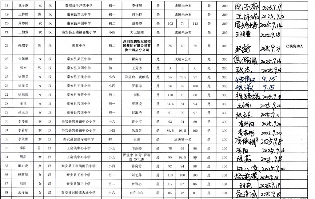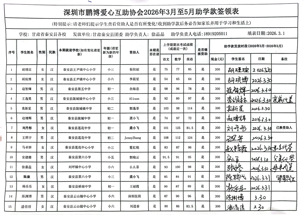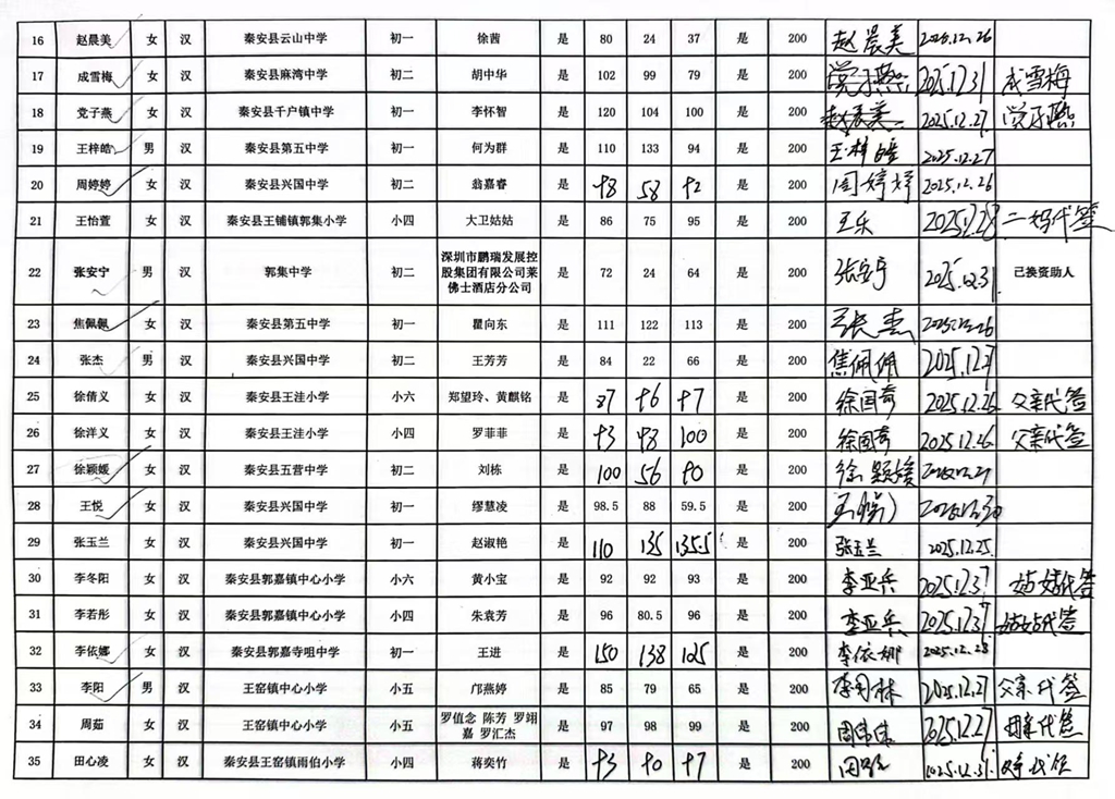 甘肃省秦安县2024年开始助学款签收反馈 |
