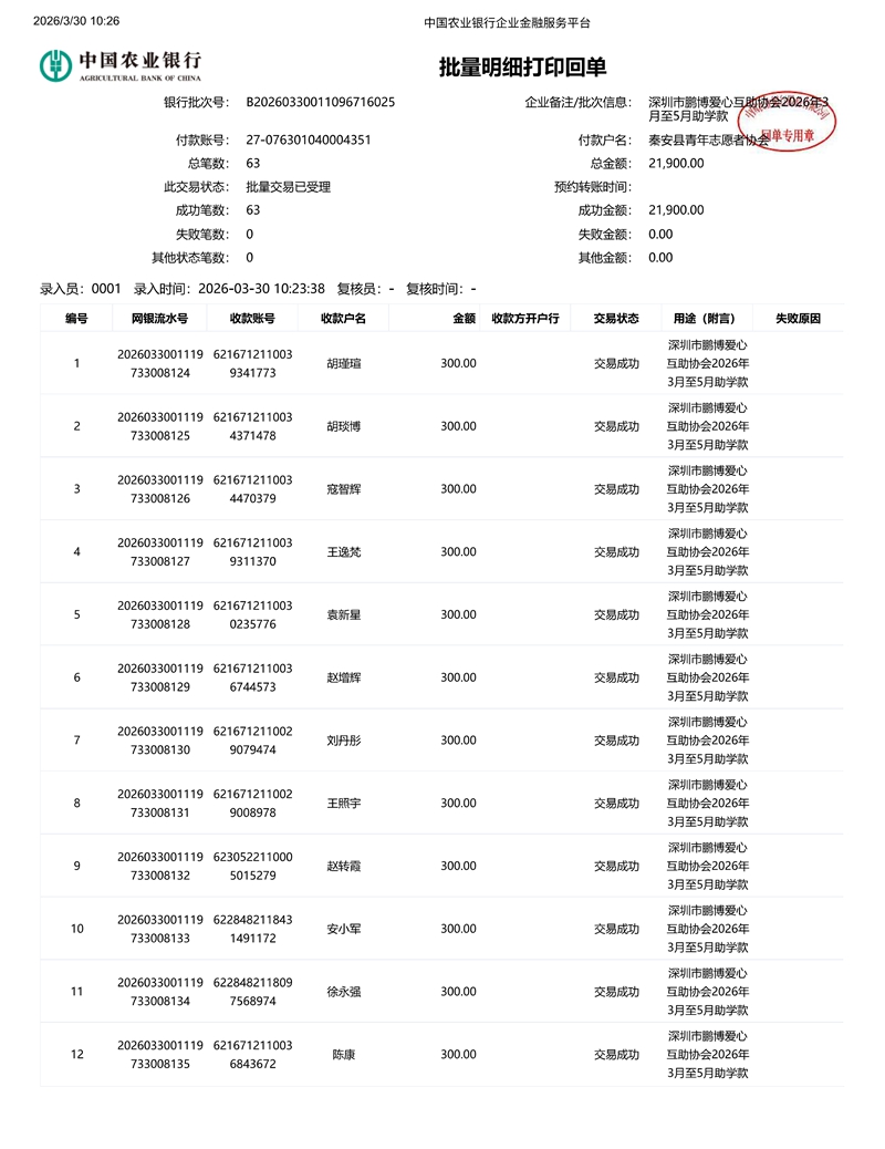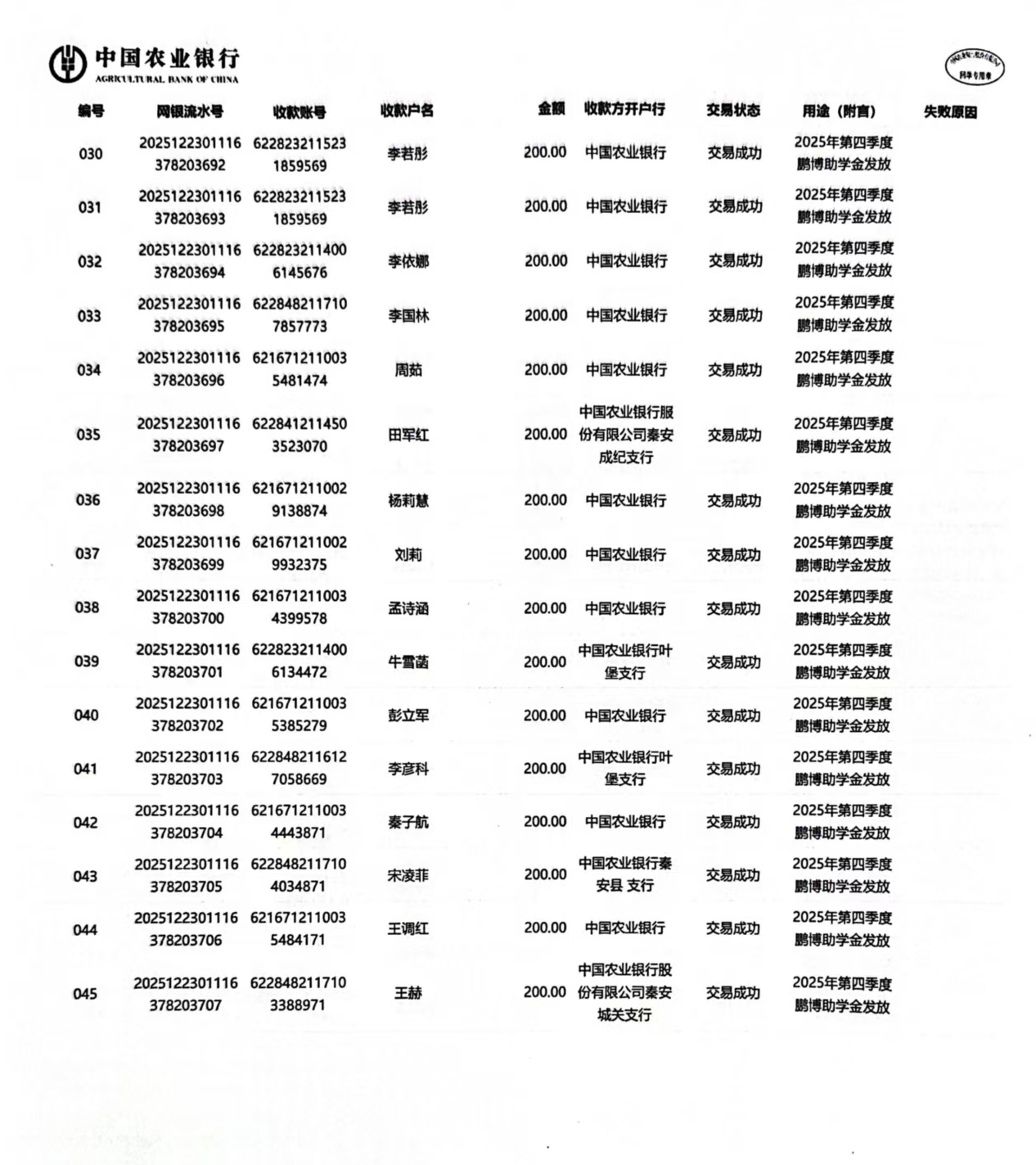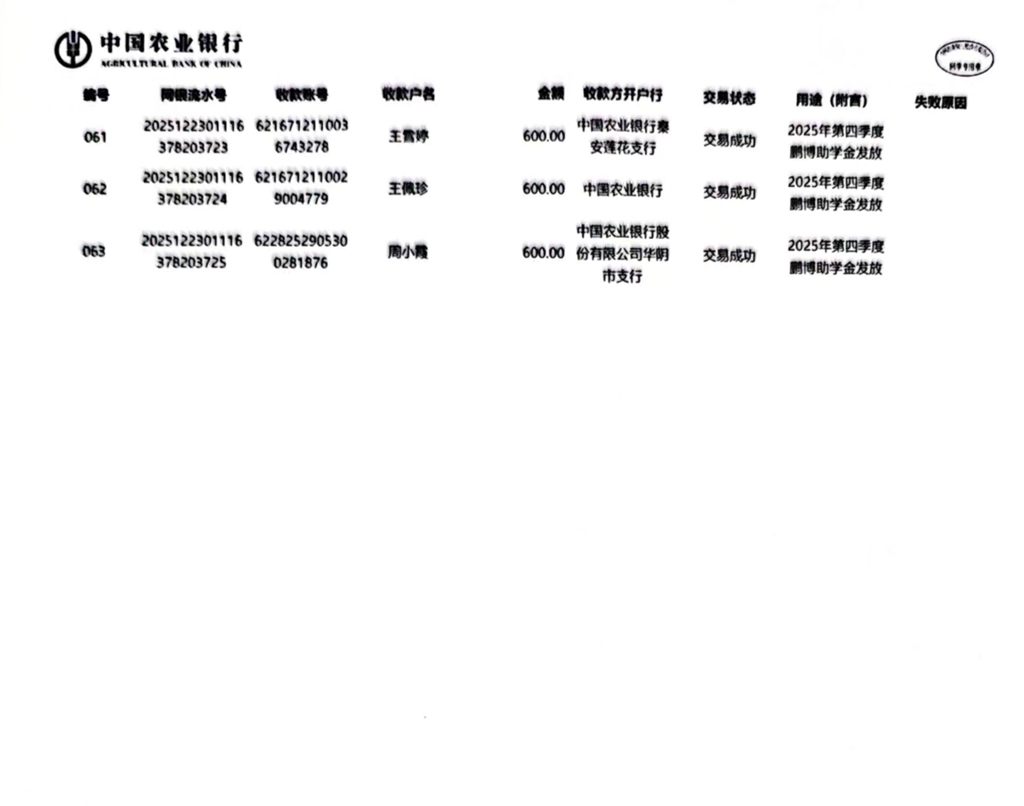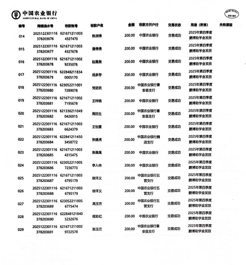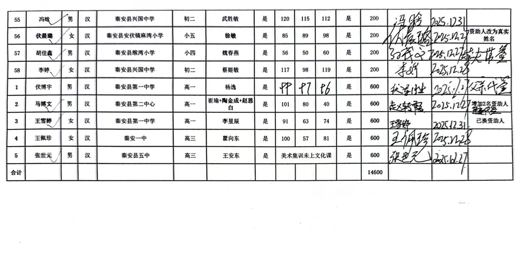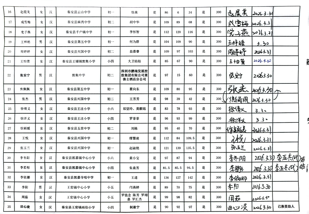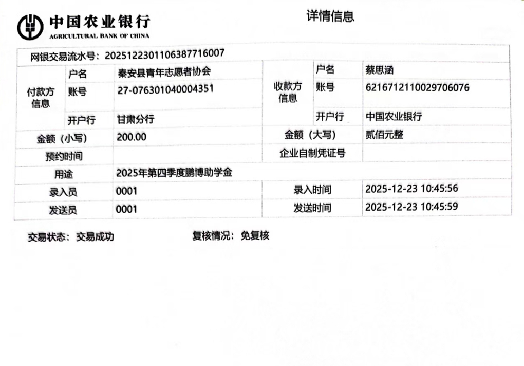 甘肃省秦安县2024年开始助学款签收反馈 |