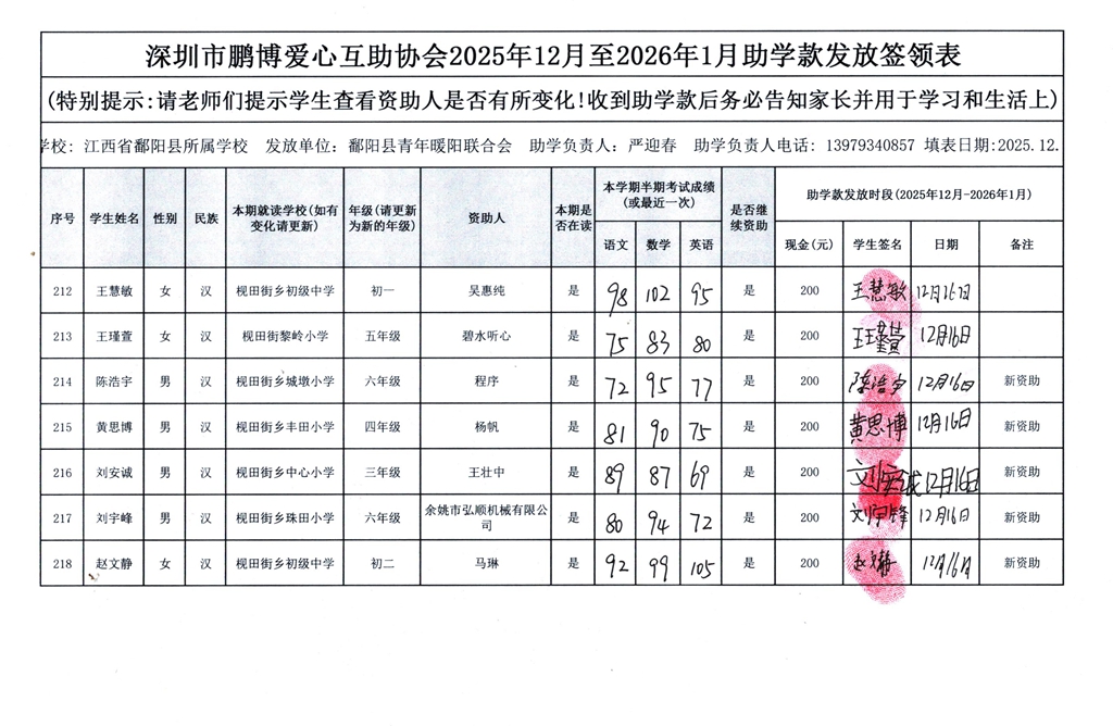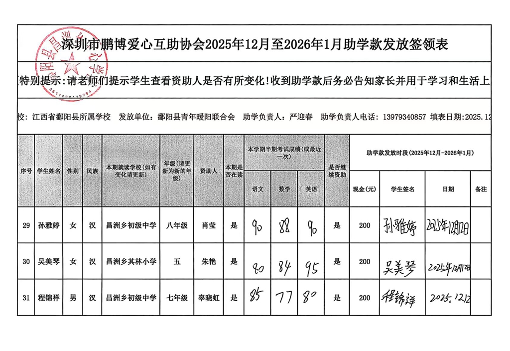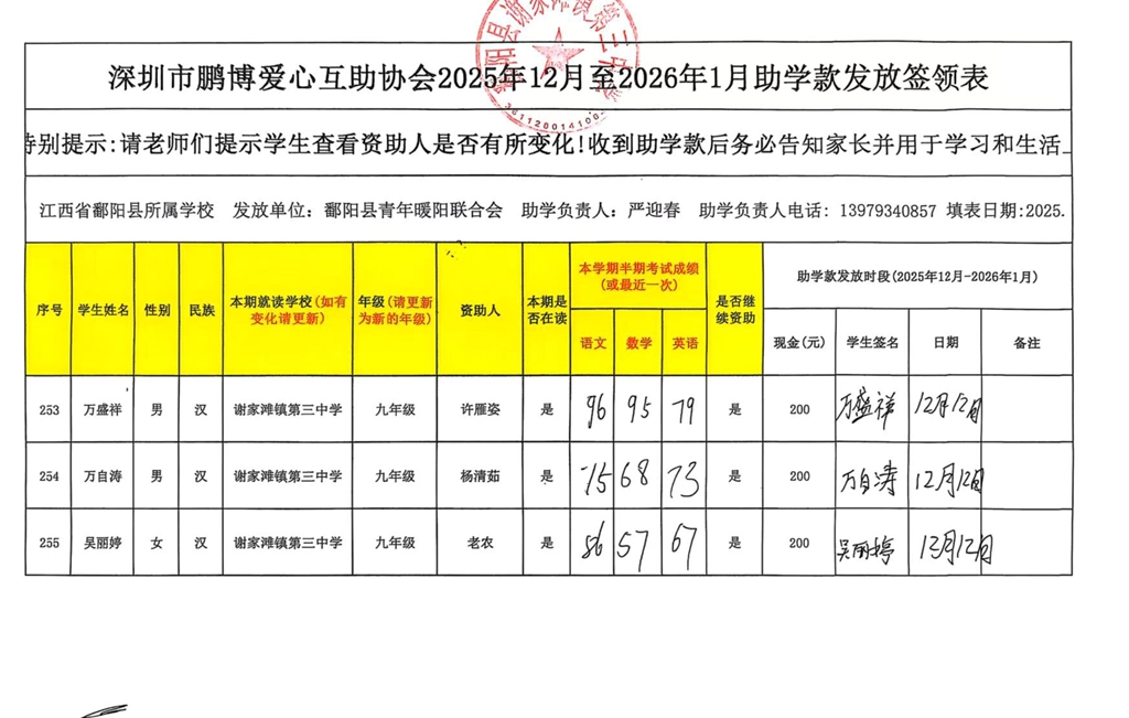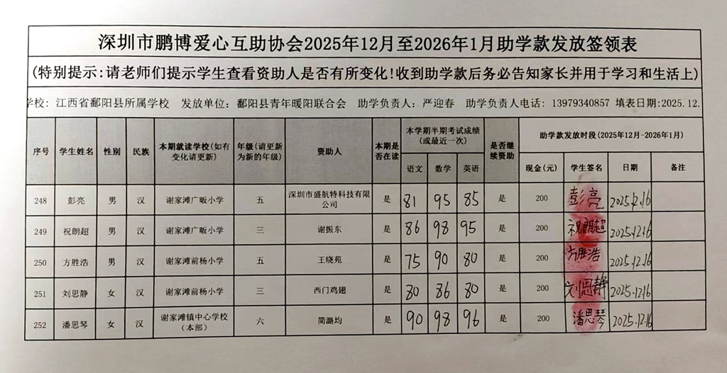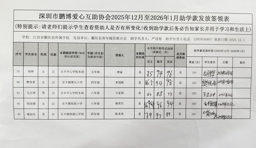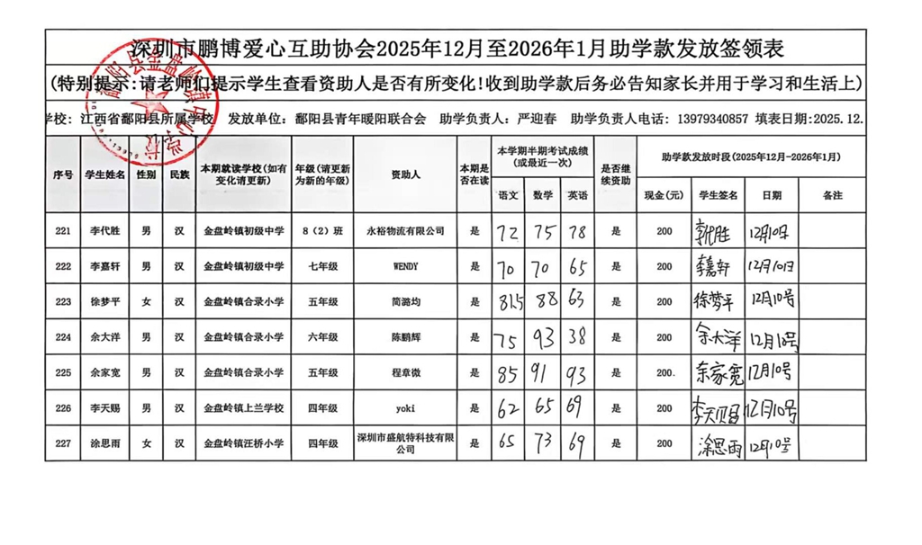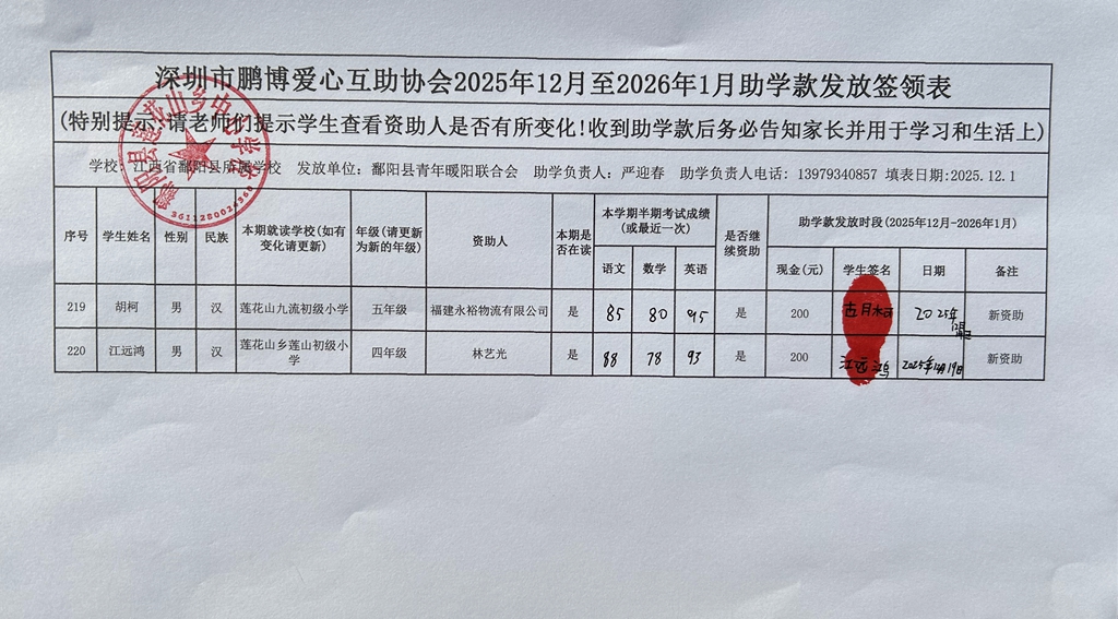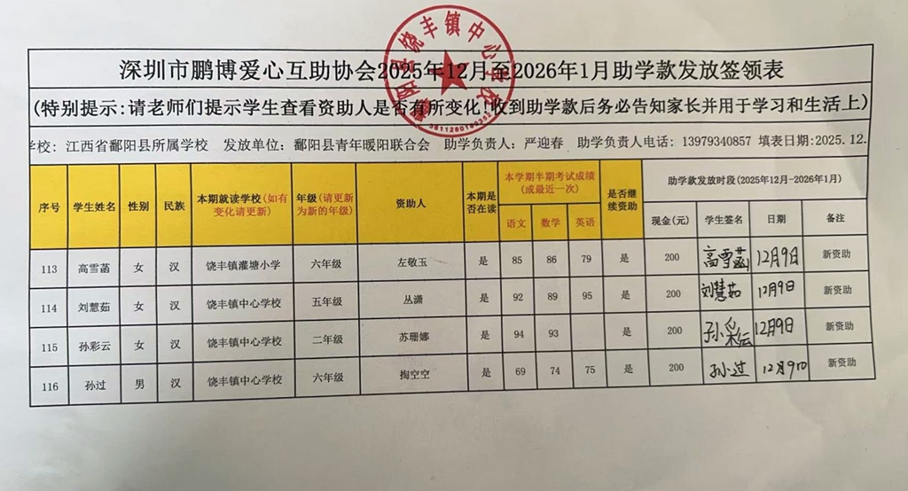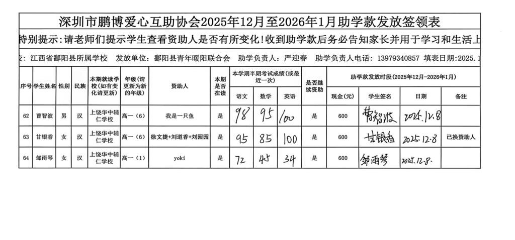 江西省鄱阳县地区(鄱阳县暖阳义工协会)2016年起助学款签... |