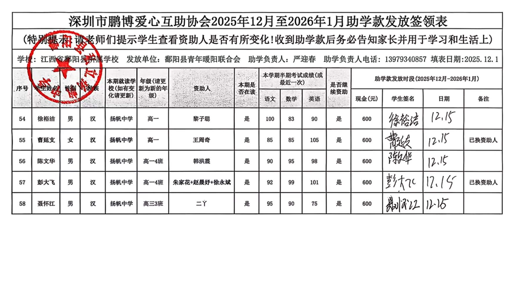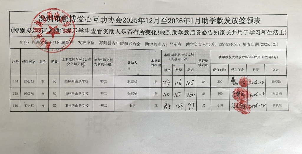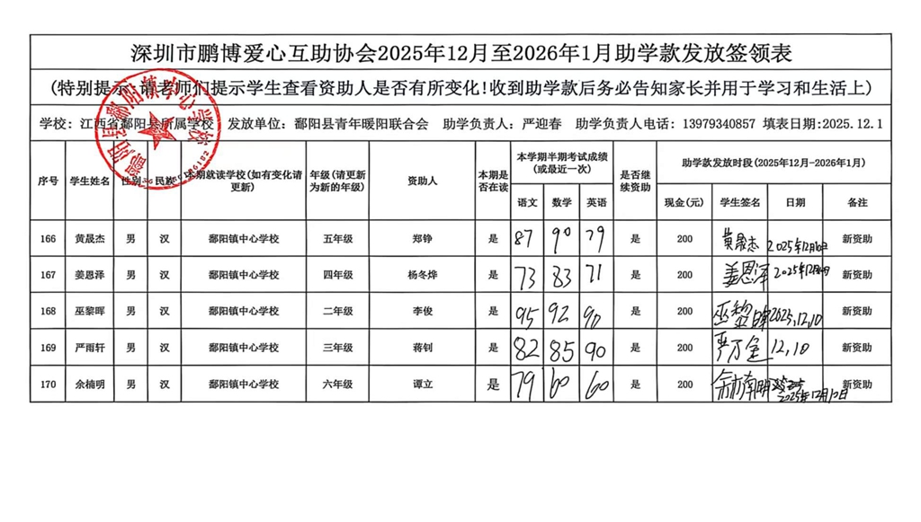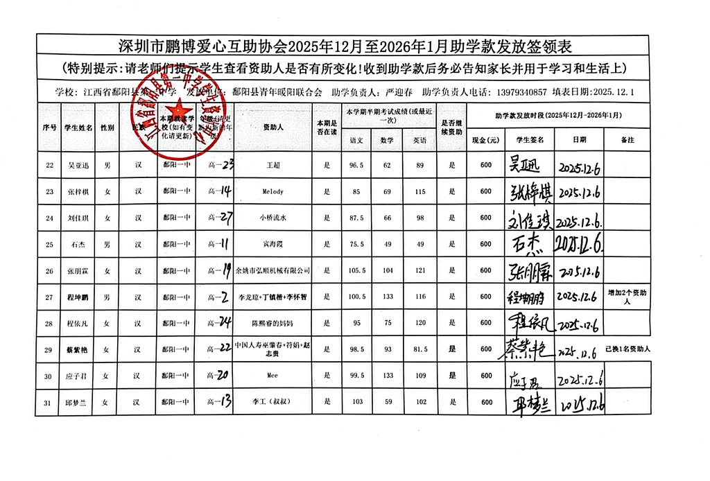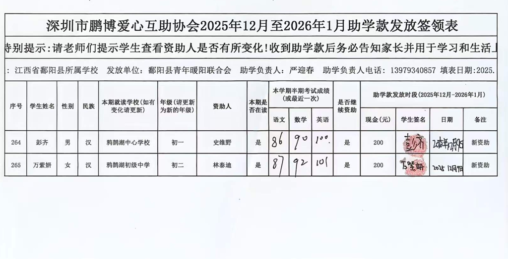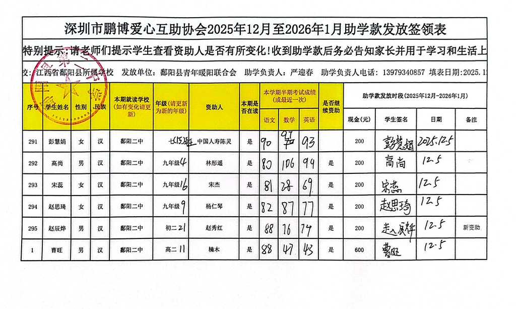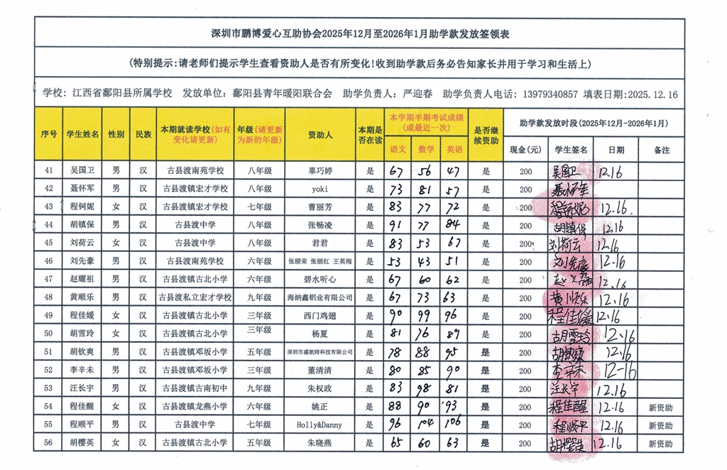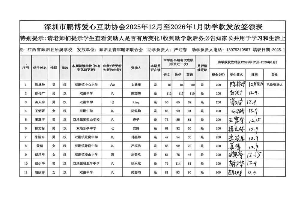 江西省鄱阳县地区(鄱阳县暖阳义工协会)2016年起助学款签... |