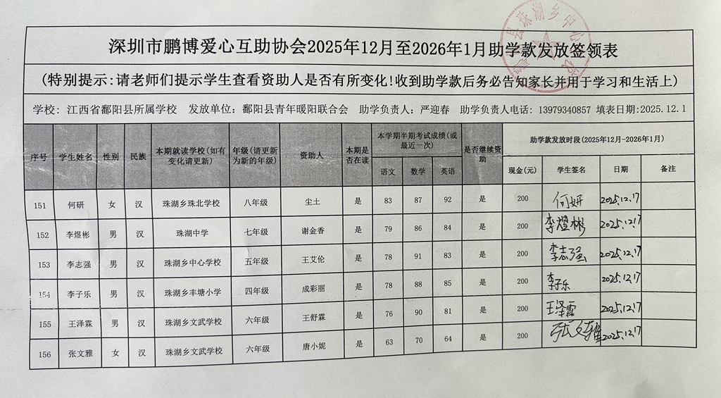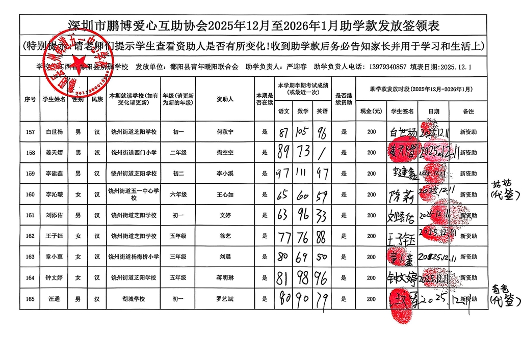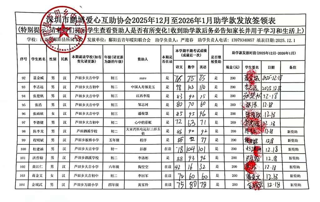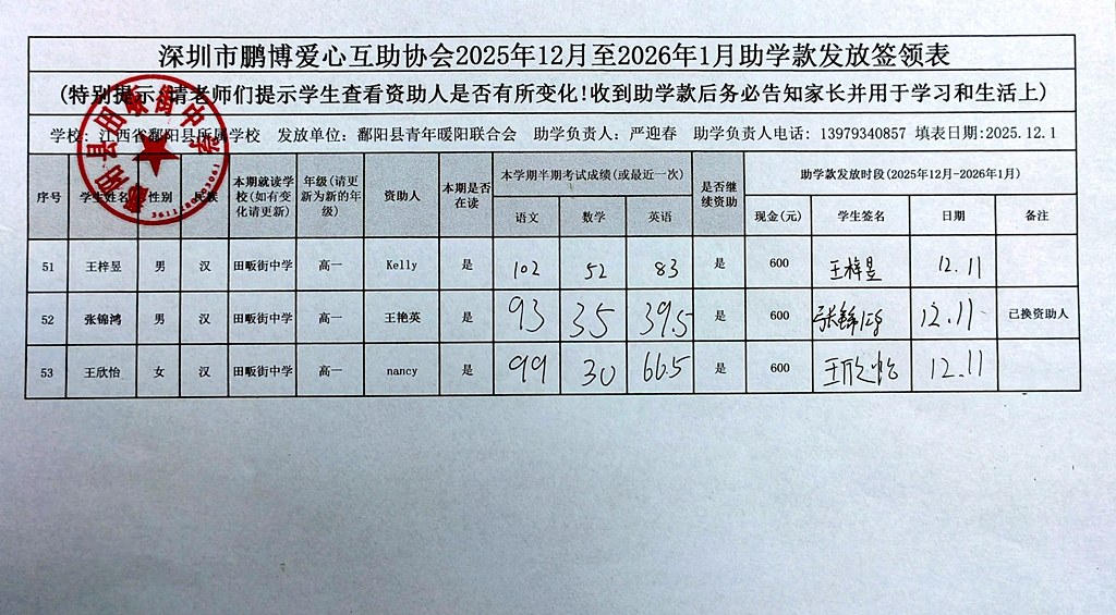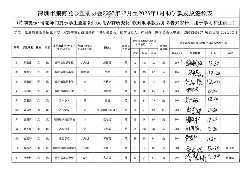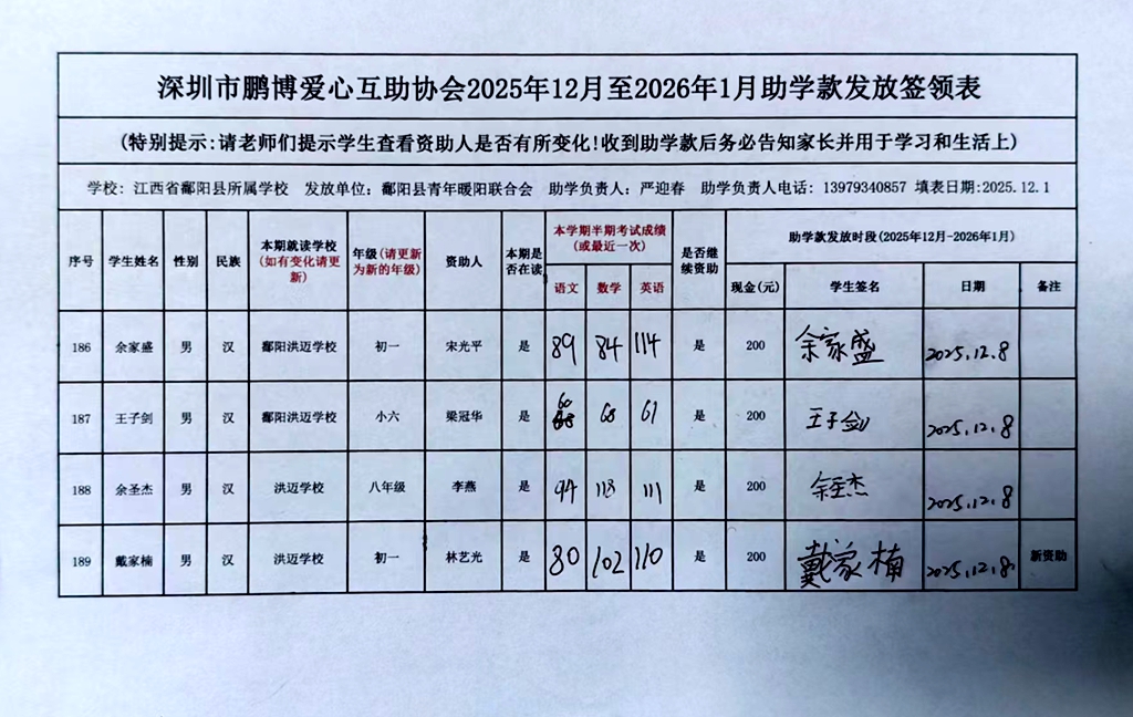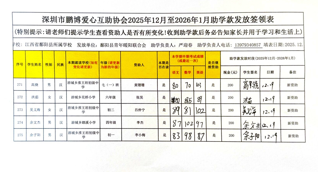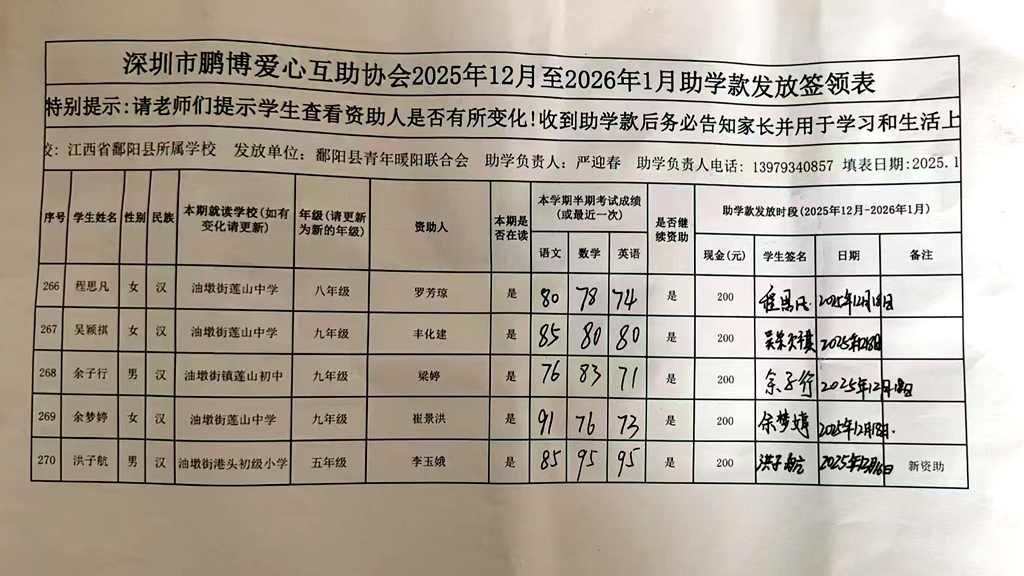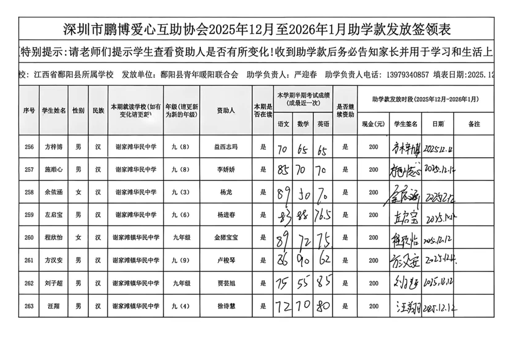 江西省鄱阳县地区(鄱阳县暖阳义工协会)2016年起助学款签... |