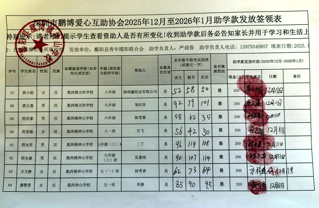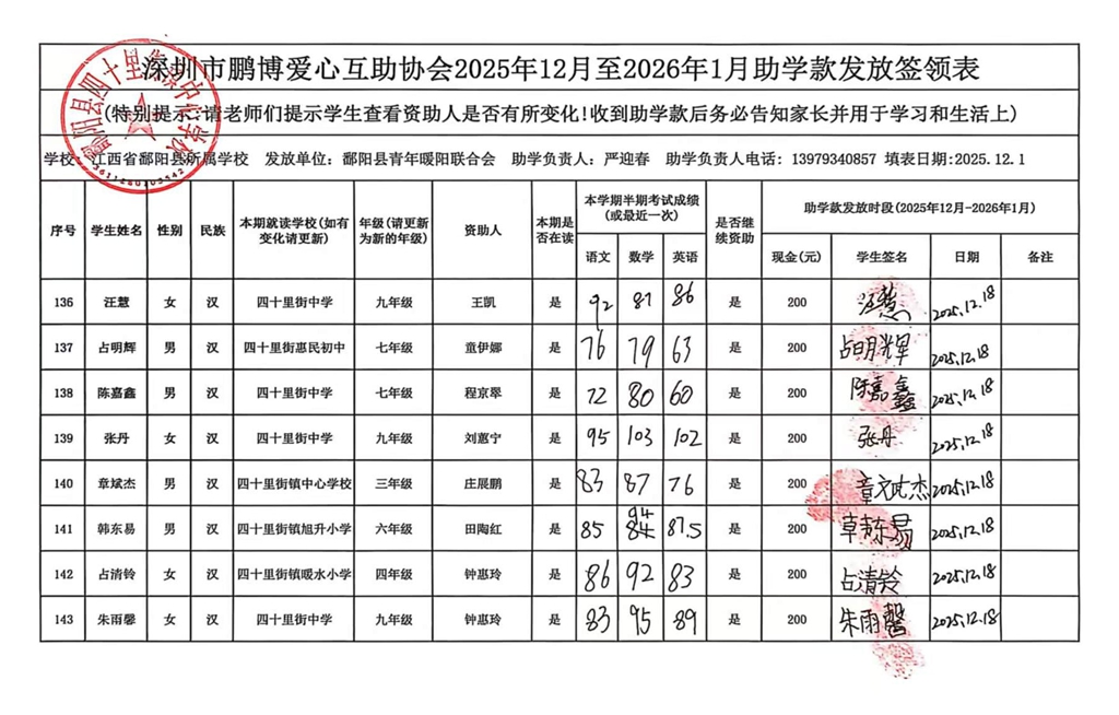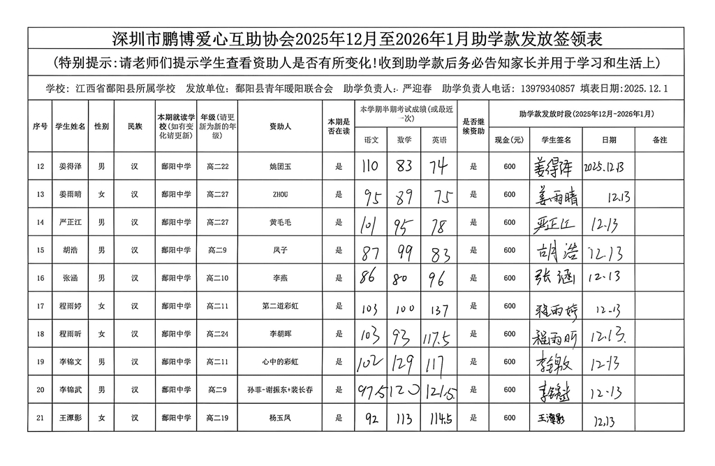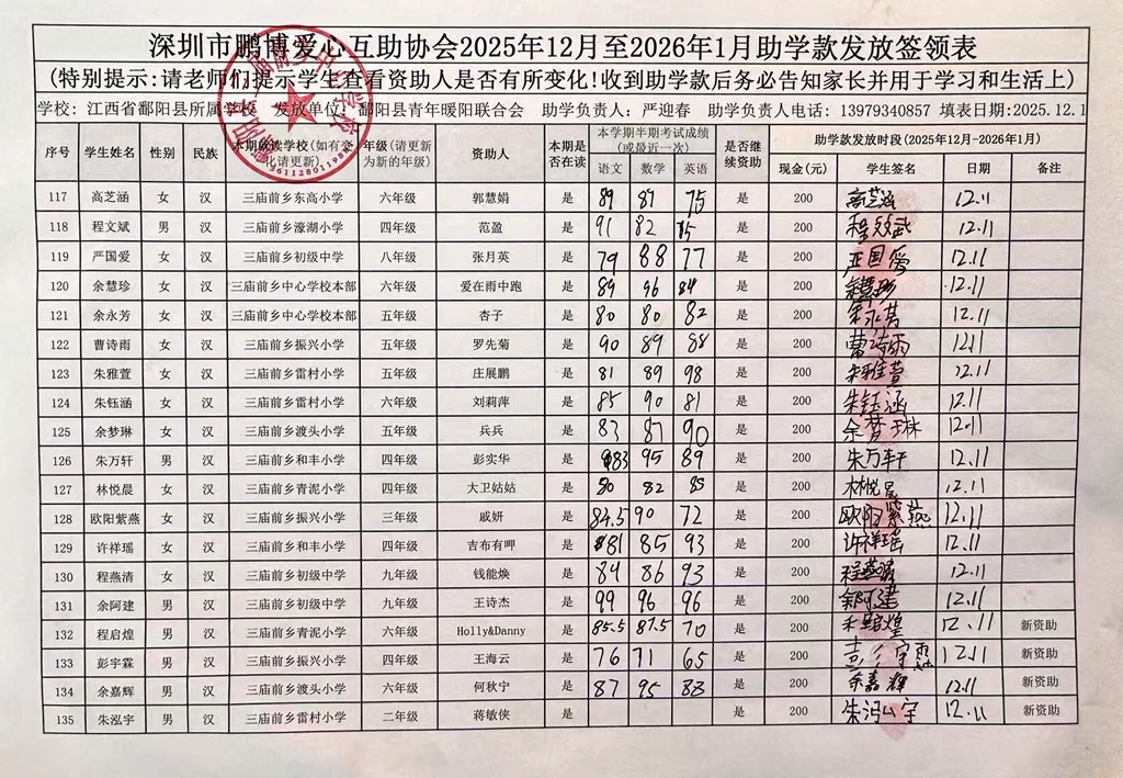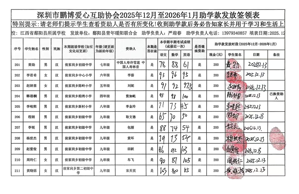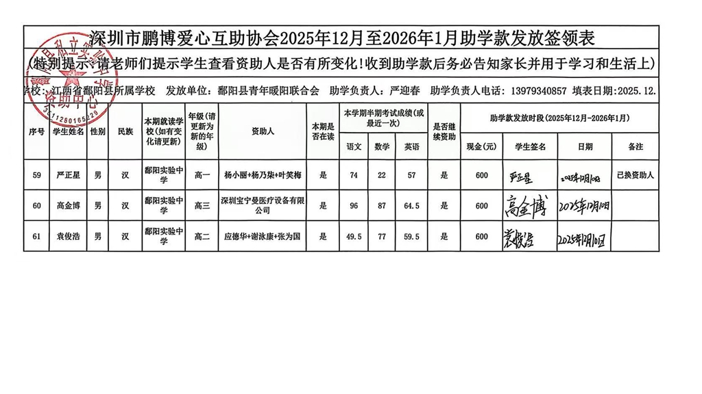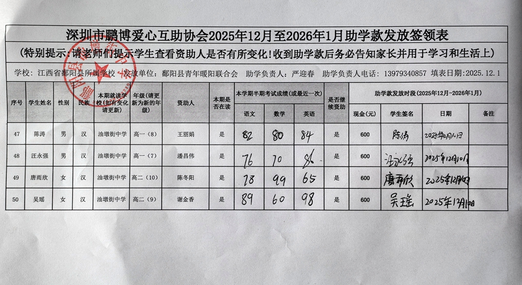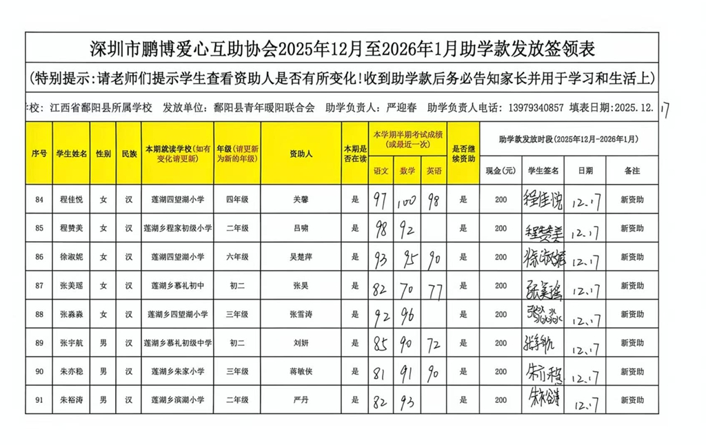 江西省鄱阳县地区(鄱阳县暖阳义工协会)2016年起助学款签... |