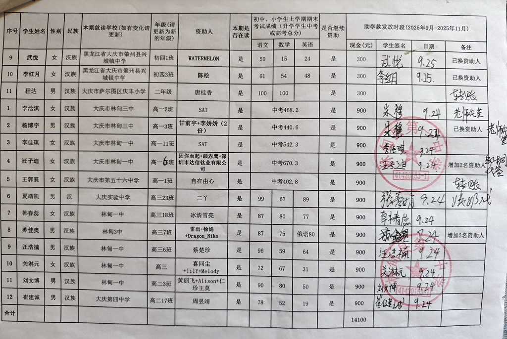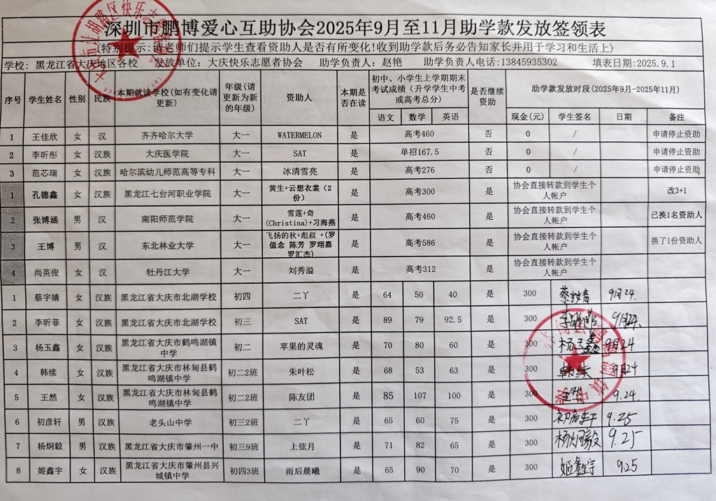 黑龙江省大庆地区2016年起助学款签领表反馈 |